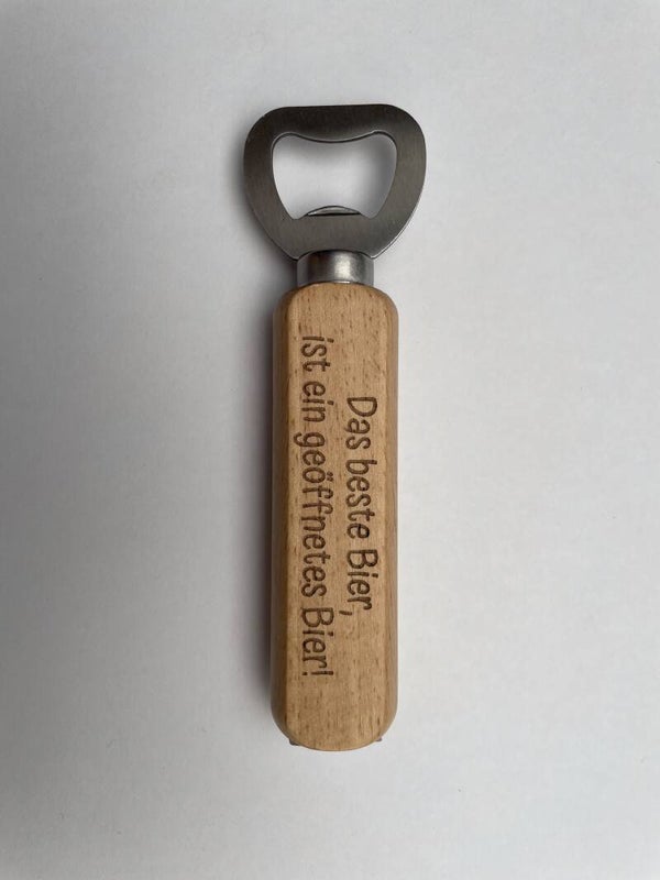 Gravierter Flaschenöffner/Bieröffner aus Holz